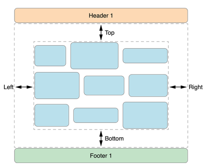 节衬垫是一种调整布置单元格可用空间的方式。你可以在页眉之后页脚之前插入衬垫。下图说明在一个垂直滚动流布局上衬垫如何影响内容。